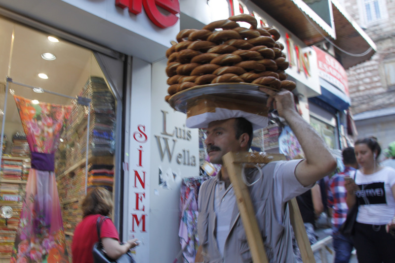 Prispeli smo na letališče Sabiha Gökcen, ki je pred desetletjem zraslo na azijski strani mesta. V iskanju pravega avtobusa in nato ladje do Sultanahmeda, starega evropskega dela mesta, kjer smo rezervirali sobo, smo naleteli na prometni zastoj in zadnjo ladjo zamudili. Zato je sledila (kar precej) daljša vožnja čez azijski in preko mostov na evropski del. Ker pri nizkocenovnih letalskih prevoznikih obrokov na letalu ni, svoje pa je lačnim želodcem naredila še čakalna vrsta zaradi kontrole ob vstopu v državo, so prvi simiti, nekakšni turški »pereci« s sezamom, ki jih prodajajo v Turčiji povsod, teknili še toliko bolj.