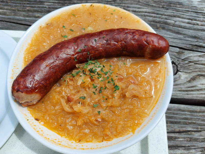 Okrepčamo se lahko v Blejski koči. Koča stoji na razgledni planini Lipanci na jugovzhodnem pobočju Lipanskega vrha v grebenu nad pokljuško planoto. Prvo planinsko postojanko je PD Bled tod odprlo leta 1951 v preurejeni pastirski koči. Leta 1976 so od blejskih kmetov kupili sosednjo pastirsko kočo ter jo predelali in povečali v prijetno planinsko postojanko. V času našega obiska so ponujali joto, joto s klobaso, ričet, pasulj ter odlične skutne in borovničeve štrudlje. V koči je možno tudi prespati.