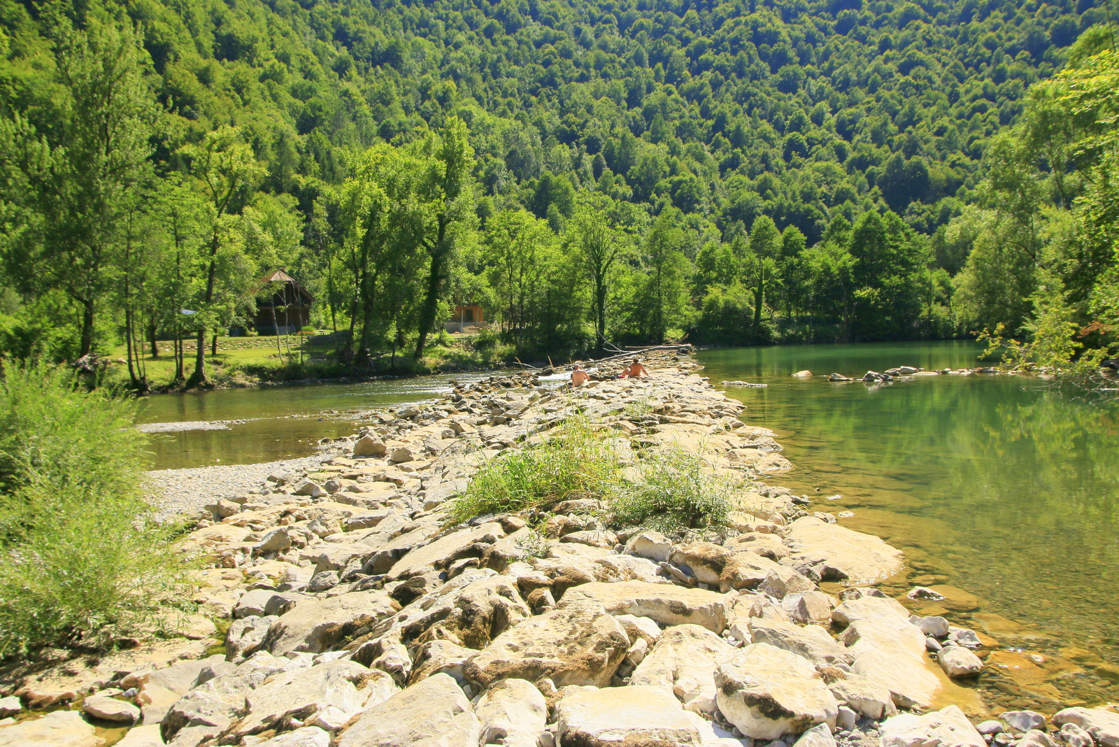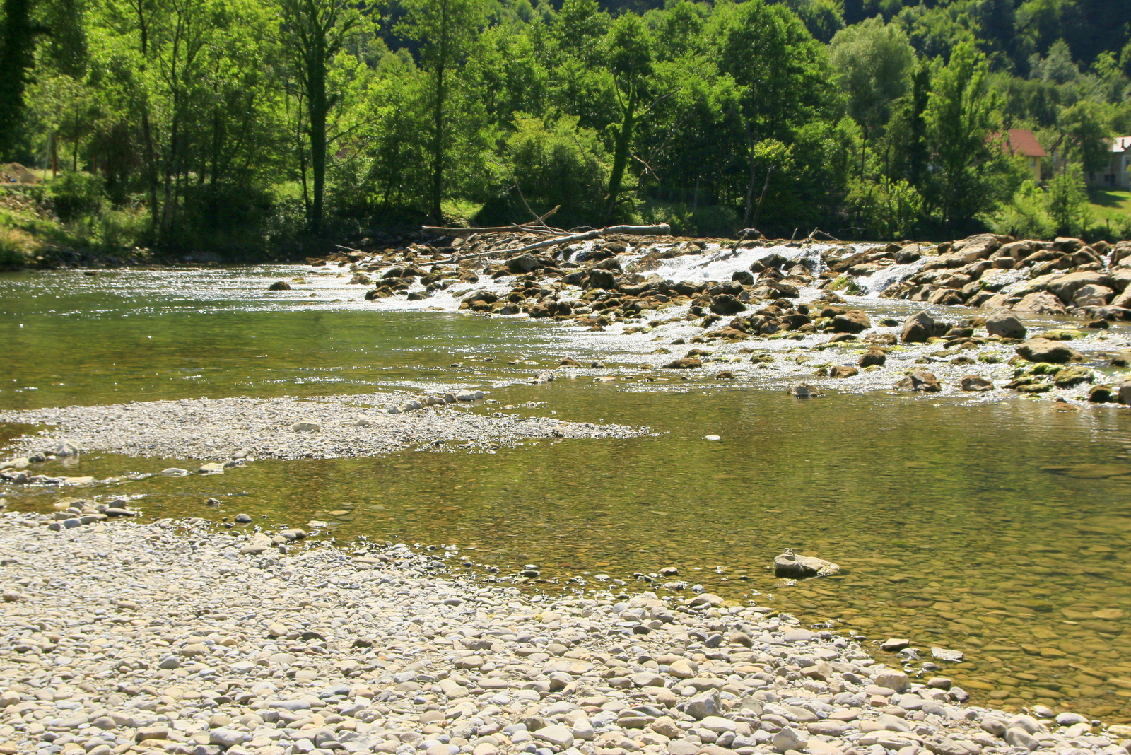 Temperatura vode se lahko povzpne vse do 30 stopinj Celzija. Ker sta bili dve noči malce »hladnejši«, je v času našega bivanja imela le malo nad 20 stopinj Celzija, ravno prav za osvežitev. Plaže ob Kolpi so travnate, senco pa nudijo številna drevesa.