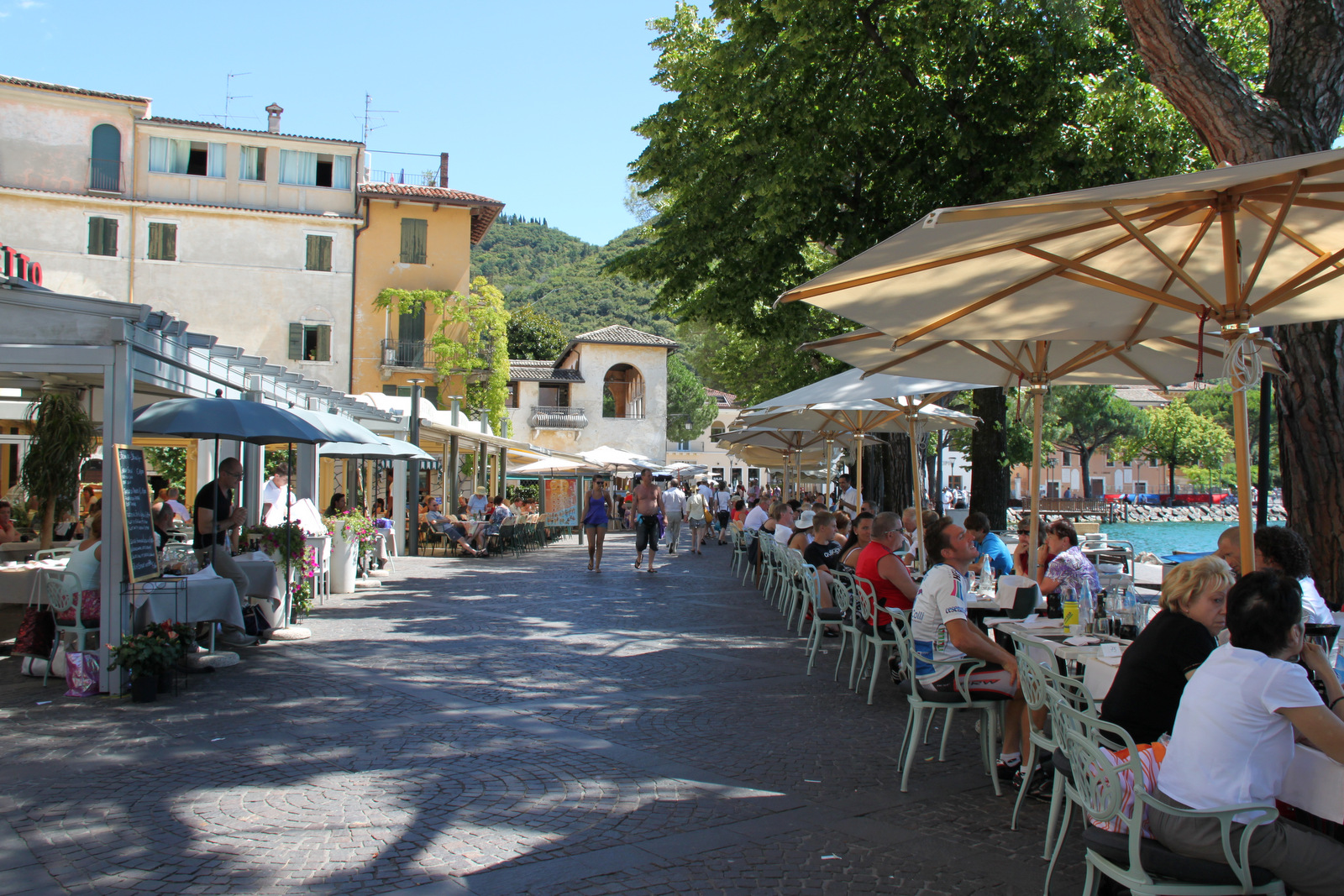 V času italijanskih počitnic v mesecu avgustu so številne namestitve, od luksuznih hotelov do privatnih apartmajev in sob na turističnih kmetijah, polno zasedene. Zaradi prijetnega sredozemskega podnebja in odlične gostinsko-turistične ponudbe ga poleg domačinov oblegajo turisti iz Zahodne Evrope. Največ smo srečali Nizozemcev, Nemcev in Belgijcev. Jezero nudi za vsakogar nekaj, od poležavanja na plaži, obiska tematskih parkov, do številnih športnih aktivnosti. Za popestritev dneva in noči pa vabijo k raziskovanju ali le večernemu sprehodu številna stara majhna mesteca in vasi vzdolž obale. Splača se ustaviti in sprehoditi po njih, popiti italijanski espresso ali polizati »gelato«, si privoščiti testenine ali pizzo ali kozarec »aperol spritza«, kot to počno domačini.