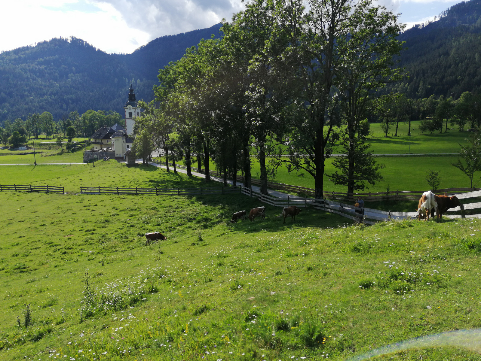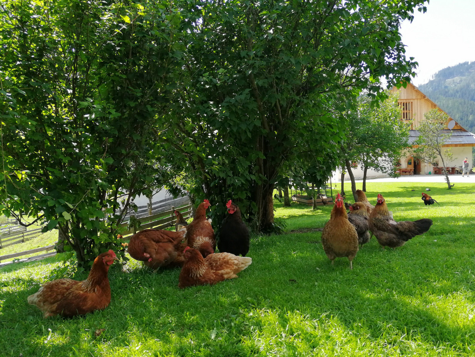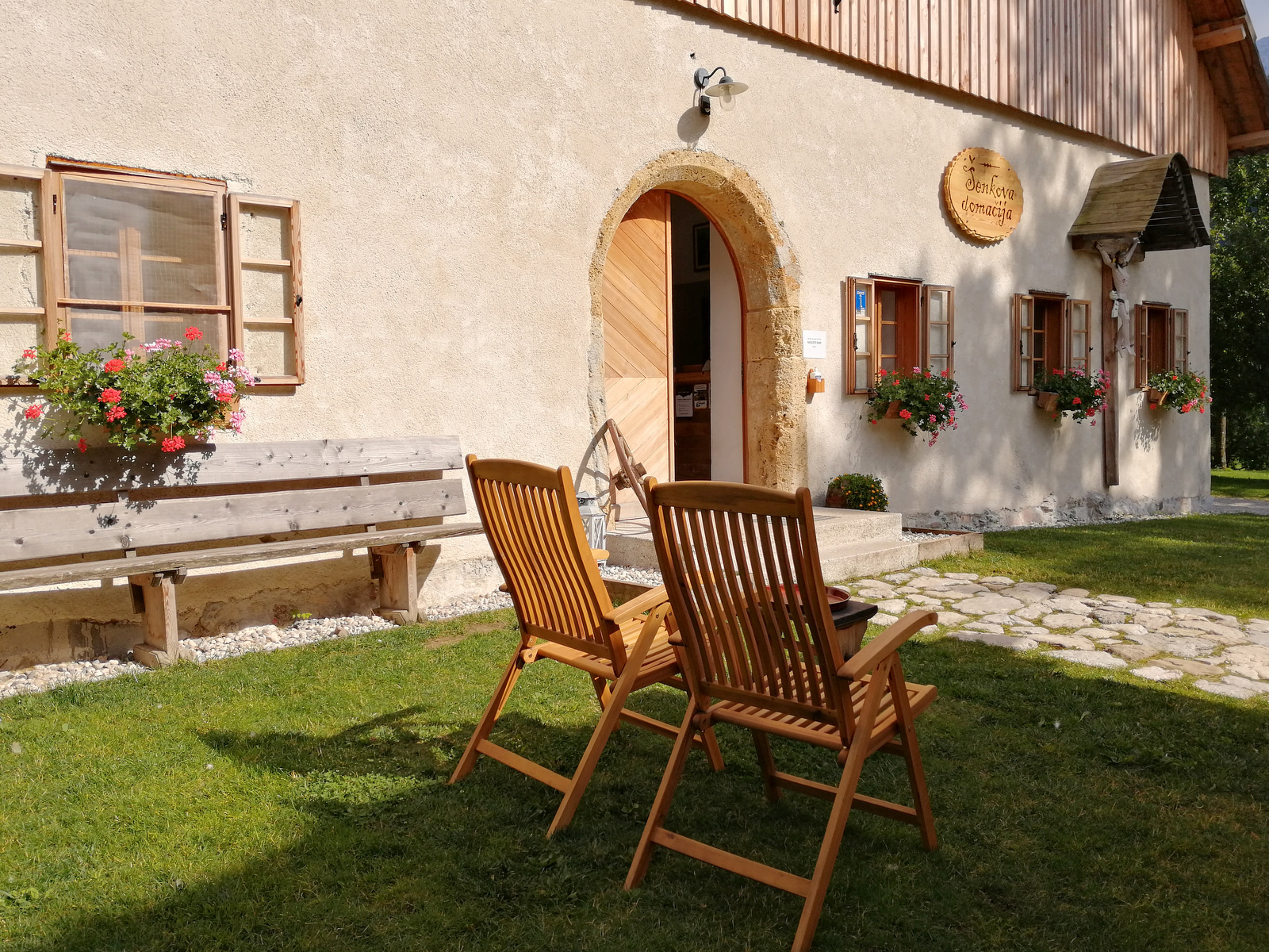 Za Jezersko so značilne velike gorske kmetije, pri nekaterih lahko tudi prespimo. Mi smo na našem družinskem počitniškem potepanju po Jezerskem prespali na Šenkovi domačiji, ki je zelo primerna ravno za družine. Gre za eno redkih domačij pri nas z ohranjeno zasnovo srednjeveške samozadostne kmečke naselbine, saj se je ohranila večina uporabljenih poslopij. Glavna hiša se domnevno ponaša z letnico 1517. Z dvorišča domačije se ponujajo res enkratni pogledi na mogočno ostenje Grintovcev. Pri njih lahko najamemo sobe ali pa prespimo v kampu, posebno doživetje pa je spanje na seniku (letos zaradi epidemije to sicer ni možno). Posebnost so tudi njihove živali, ki se prosto gibajo: kokoške, račke, psa Arči in Medo, mucki, pa z daljave prašički, krave…