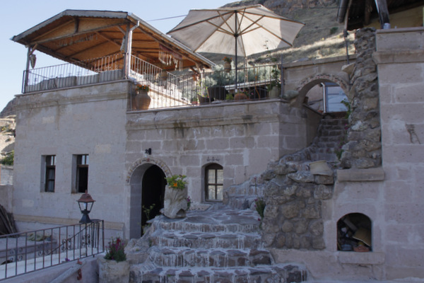 Posebno doživetje v Kapadokiji je spanje v jamskih hotelih. Veliko hotelov oziroma penzionov ima sobe izklesane v tufu. Sobe oziroma prostori niso topli, zato poleti ne potrebujejo klimatske naprave, so pa presenetljivo tudi dovolj svetle.