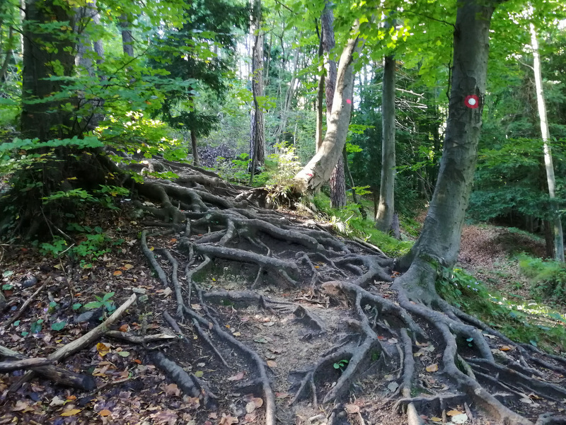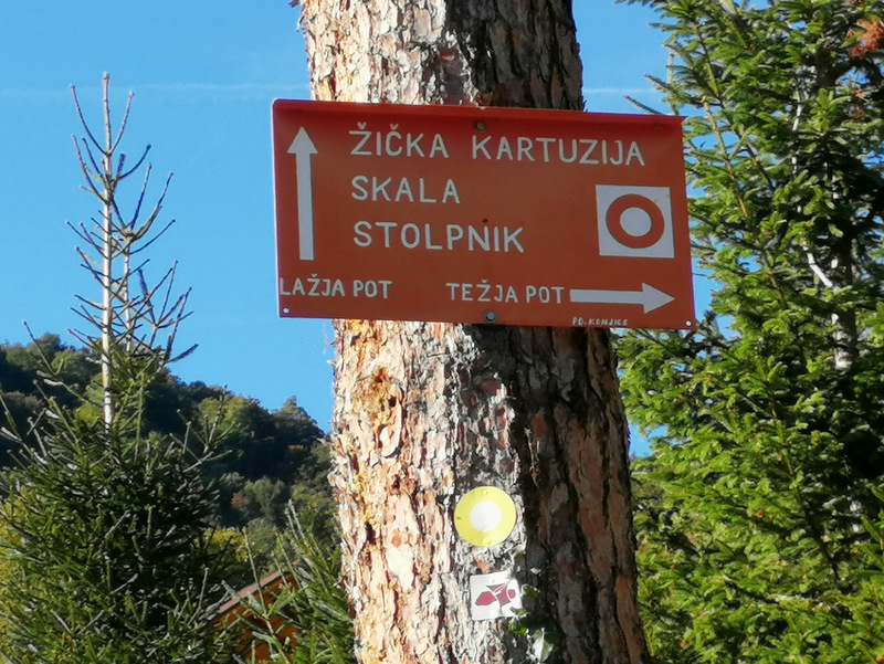 Pri pokopališču nas oznake vodijo do Skale, Stolpnika in Kartuzije, izberemo lahko lažjo ali težjo pot (bolj strma, ni prezahtevna). V začetku poti si lahko ogledamo še razvaline starega konjiškega gradu.