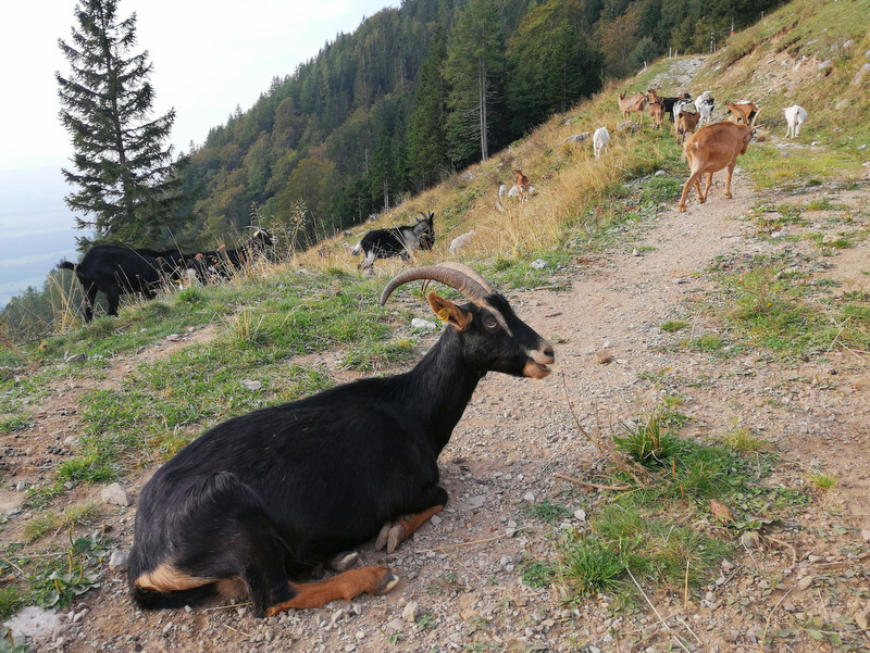 Tik ob planini se je pasla velika čreda zelo lepih koz, veliko med njimi črnih in rjavih, ki se ob poti niso dale motiti in so zvedavo opazovale mimoidoče ter lepo pozirale… Ob poti do planine pa smo naleteli na precej veliko čredo ovac.