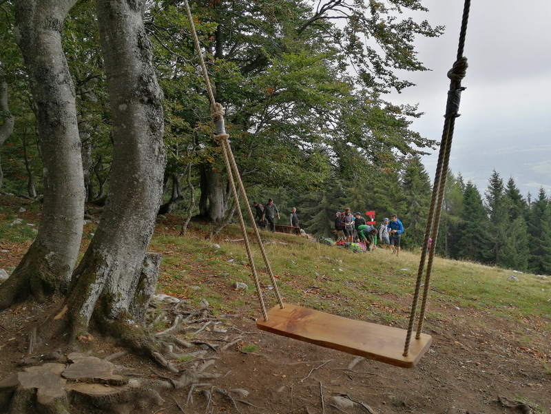 Okrog Koče in na poti v povratku do Gozda je bila precej večja gneča kot ob poti do Tolstega vrha, najmanj ljudi pa smo zasledili na Mali Poljani, večinoma pohodnike na Storžič. Koča privablja predvsem veliko družin z manjšimi otroci. Lepa popestritev tako za mlade kot tudi starejše je velika gugalnica ob koči. Če se boste želeli vsaj malo pogugati, boste morali ob vikendih počakati na svojih par minut lepo v vrsti…