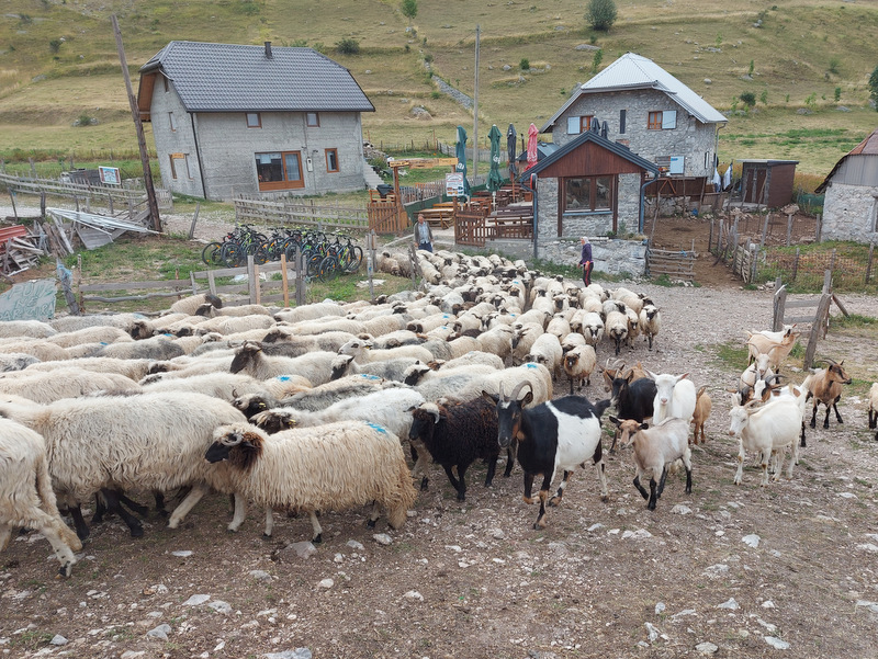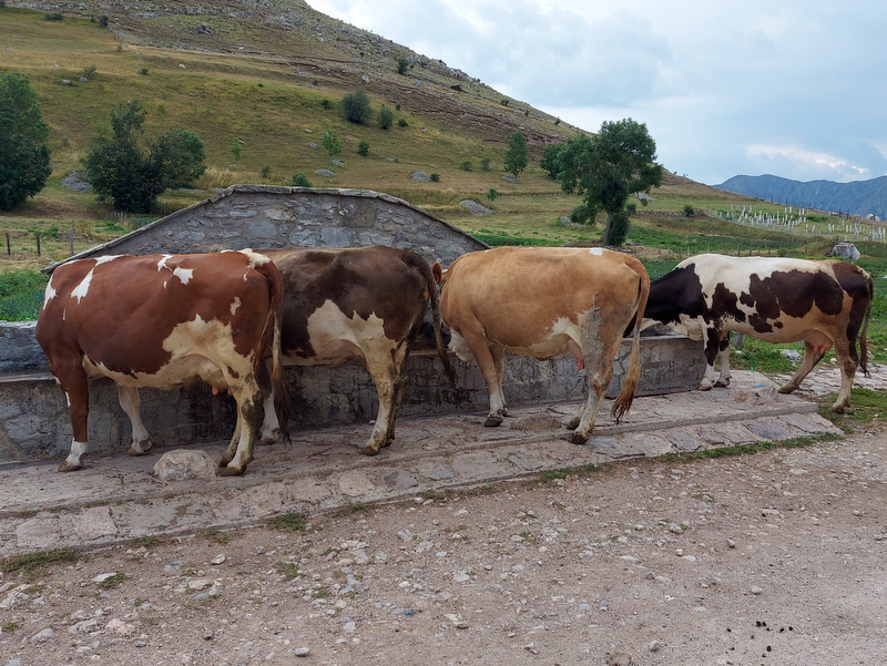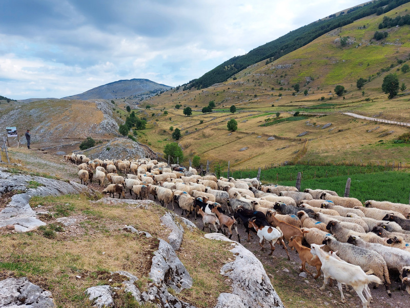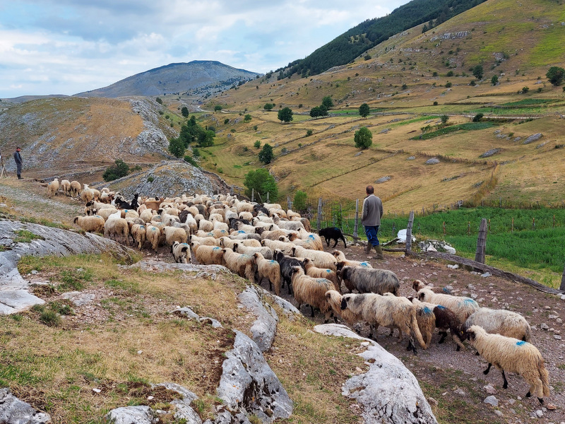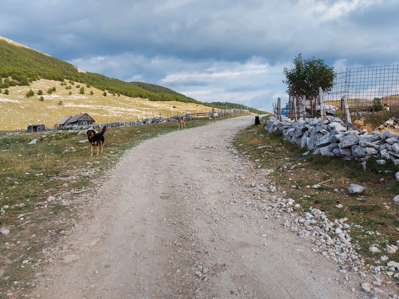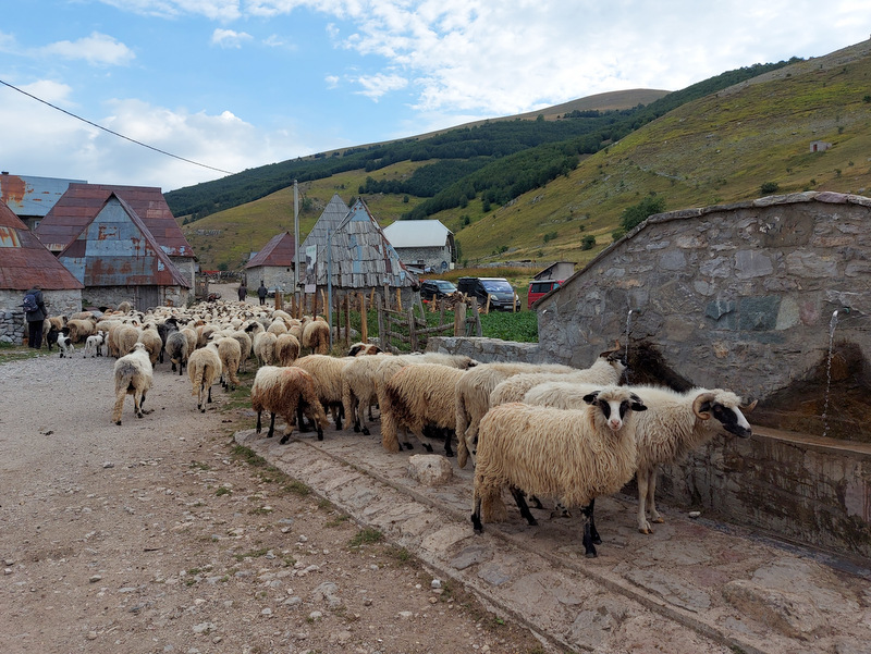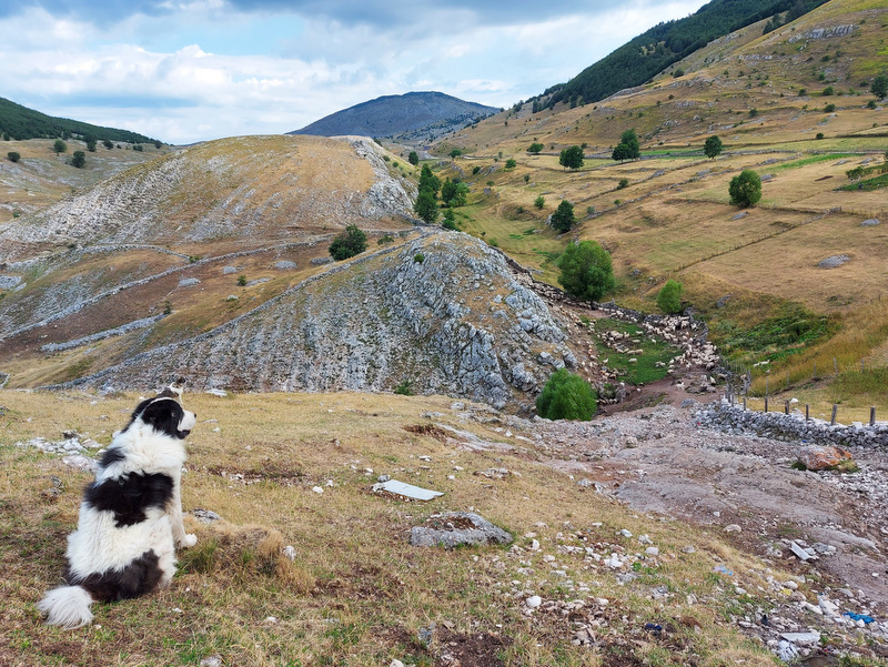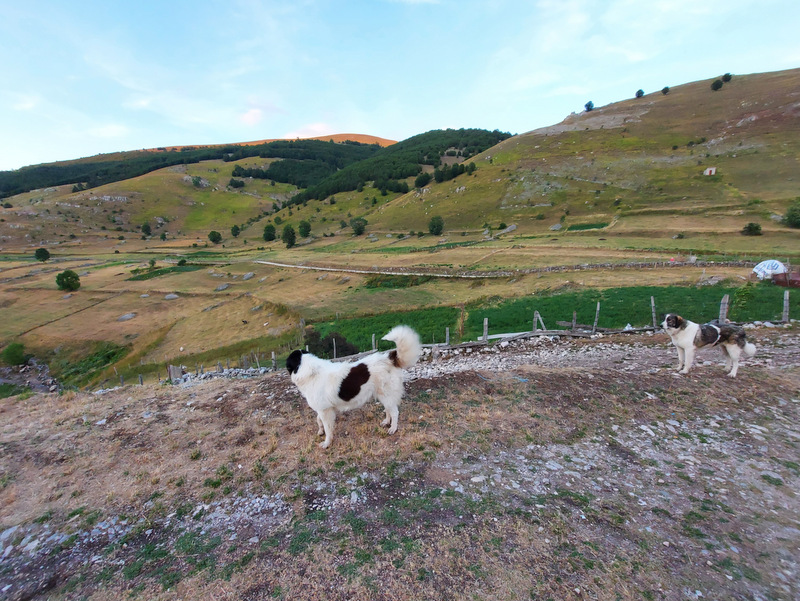 Okrog pol osmih zjutraj so pastirji s psi začeli gnati na pašo ovce ter nekaj koz in krav. Zanimiva je tudi hierarhija psov, ki spremljajo živali na pašo. Črni, manjši psi, ovce in druge živali priganjajo in jih na poziv pastirja zbirajo skupaj. V ozadju čredo opazujeta dva večja, črno – bela psa (pasme žal ne poznam), ki spremljata dogajanje okrog črede ter morebitne nevarnosti (volki in podobno) z daljave. Ti psi se seveda ne dajo motiti, božati, pozvati in so sto odstotno skoncentrirani le na svoje delo. Ob jutranjem sprehodu sem naletela na zanimiv prizor: trije psi so spali ob čredi ovac in ob sprehodu niso dovolili, da bi šla mimo njih. Lastnik apartmaja je povedal, da se da psa ukrotiti s palico, a se mi ni zdelo vredno posegati v njihovo hierarhijo. Pripovedoval je tudi, da psi stražijo svoj teritorij tudi tako, da tujcem, ki pridejo v vas, če je blizu čreda, lahko celo pregriznejo gume. Ob sprehodu v vasi je ob hiši ležal pes, ki je to želel storiti motoristu, pa ga je ta poškodoval. Lastnica je rekla, da verjetno ne bo preživel.