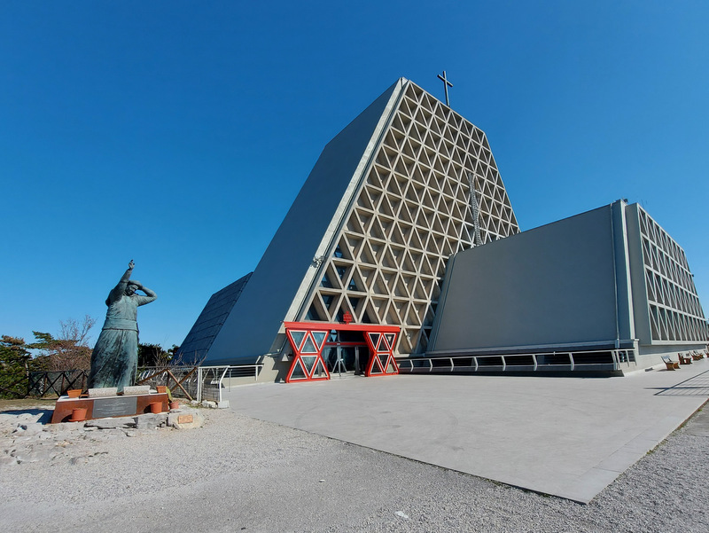 Moderno Marijino svetišče na Vejni je rimskokatoliška cerkev severno od Trsta. Zaradi njegove trikotne oblike ga Tržačani imenujejo »formaggino« ali »sirček«, pa tudi »likalnik«. Načrte zanj je po skici tedanjega tržaškega in koprskega škofa Antonia Santina izdelal gradbeni inženir Antonio Guacci. Škof in kasnejši nadškof. Med drugo svetovno vojno se je zaobljubil Mariji, da bo na vrhu hriba dal zgraditi veličastno svetišče njej v čast, če bo mesto Trst ubranila pred popolnim opustošenjem. Leta 1958 je tedanji papež Pavel VI. pozval vso Italijo, naj po naročilu Marije iz Fatime opravijo posvetitev Marijinemu brezmadežnemu srcu. V ta namen je kip Fatimske Marije romal po 92 italijanskih mestih, z zaključkom v Trstu, ko so na Vejni septembra 1959 položili temeljni kamen za novo svetišče. Arhitekturna zasnova v obliki ponavljajoče piramide naj bi simbolizirala črki A in M iz marijinega monograma, tudi oblike modulov ponavljajočih enakostraničnih trikotnikov v konstrukciji naj bi spominjala na božjo popolnost oz. troedinost Boga, njegovega sina in Svetega Duha.