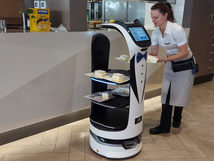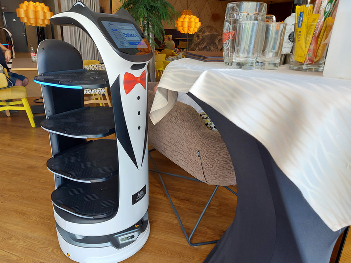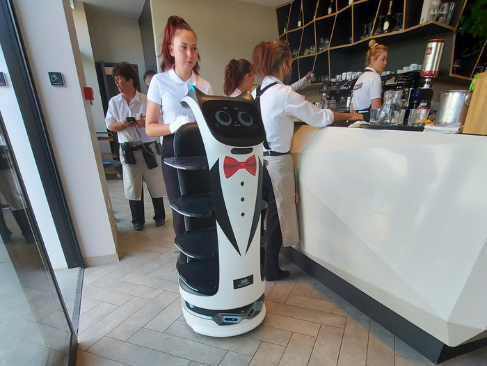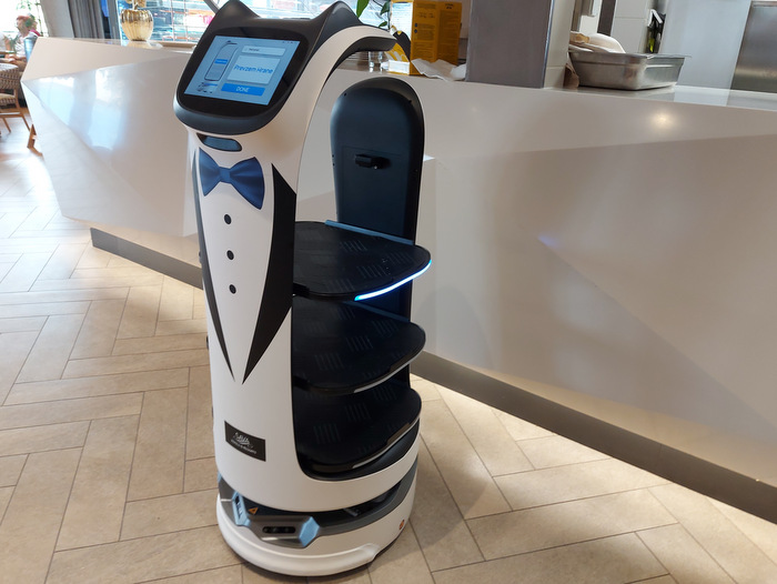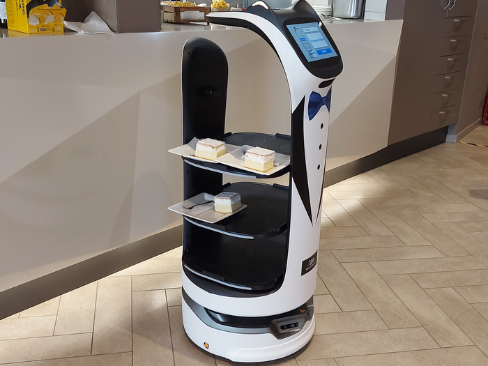 V kavarni Park na Bledu vam odslej postreže originalno blejsko kremno rezino ali kar boste pač naročili robot. Natakarjem namreč pomagata prinašati in odnašati hrano in pijačo dva robota, ki so ju poimenovali Pavla in Tone.