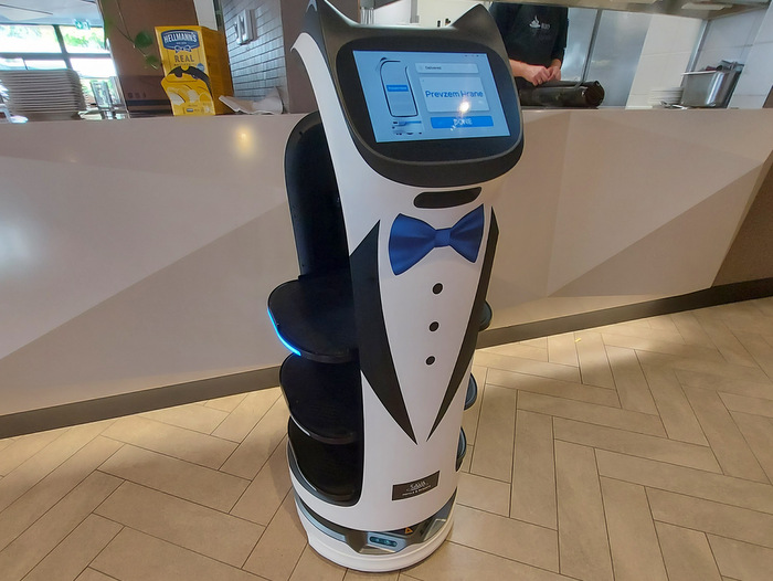 Gre za prva tovrstna robota pri nas. V kavarni poudarjajo, da robota nista nadomestilo za natakarja ampak sta jim le v pomoč. Za tovrstno potezo so se odločili, da bi razbremenili natakarje, ki dnevno s strežbo naredijo tudi do 15 kilometrov. Robota tako nadomeščata nekdanje tradicionalne vozičke s kolesi, ki so jih natakarji potiskali. Lahko se nasmejita, sta prijazna, zaigrata pesem Vse najboljše in še kaj. Čeprav so ju zaenkrat uvedli le testno, sta navdušila že številne, ki ju želijo fotografirati in čakajo, da jim postrežeta.