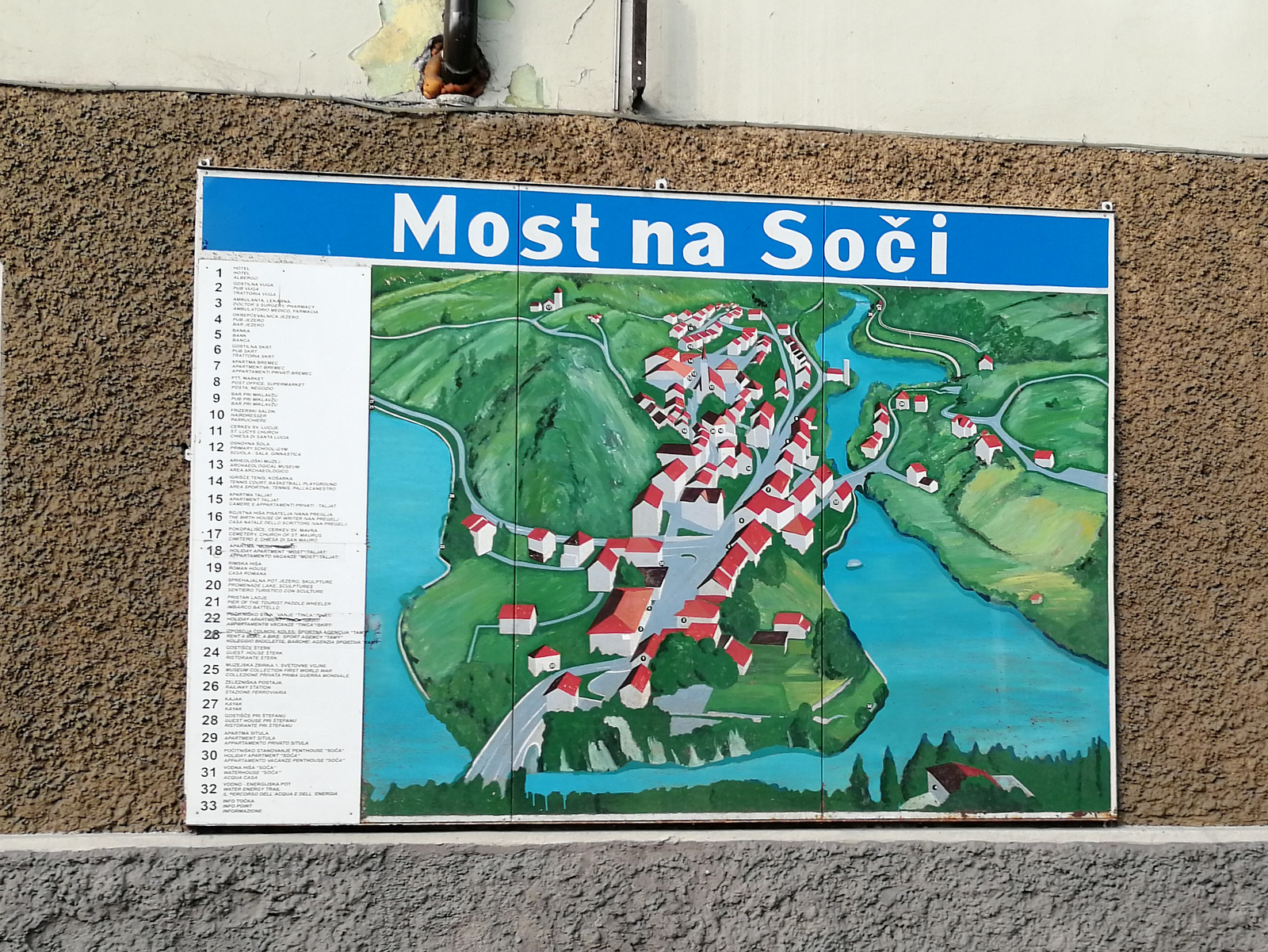 Najprej smo se ustavili v Mostu na Soči, ki je znan po akumulacijskem jezeru. Strnjeno naselje z nekaj čez 400 prebivalci v Zgornjem Posočju, na južnem koncu Tolminske kotline, leži na pomembnem prometnem križišču v smeri proti Novi Gorici, Tolminu in ob Idrijci proti Idriji in Ljubljani, v bližini pa je speljana tudi trasa železniške proge Jesenice – Sežana. Tu se steka v Sočo Idrijca. Obe reki sta s svojima strugama, vrezanima globoko v skalnata korita, naselju nudili dobro obrambno zaščito že nekoč.