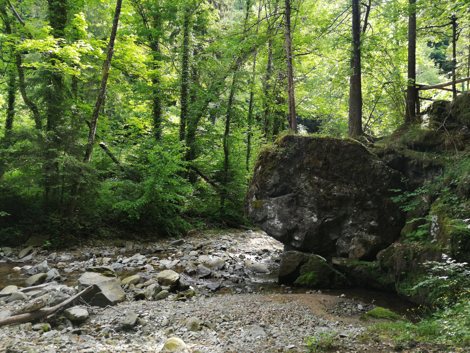 Opazimo tudi gaber vzdržljivosti oziroma korajže, ki se sklanja nad strugo in kljubuje času, pa skalo v obliki želve. Skozi sotesko prečkamo tudi več mostov.