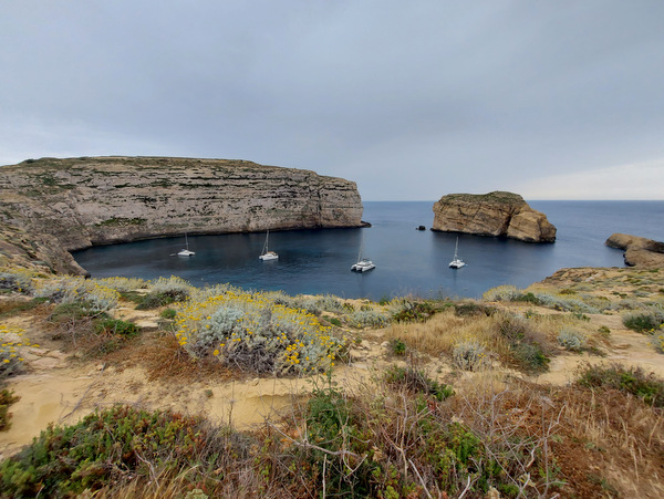 Tudi na otoku Gozo smo se določili za pohodništvo. Izbrali smo pot od kraja Xlendi, ki je priljubljeno letovišče na otoku Gozo do Azurnega okna, ki je bila dolga ca. 10 km. Čeprav pot v naravi ni označena in je potrebno slediti google zemljevidom, je zaradi številnih lepih razgledov vredna obiska. Deloma vodi nad klifi, deloma med vrtovi oziroma njivskimi površinami, deloma pa skozi naselja, kjer so ceste ograjene s kamnito ograjo.