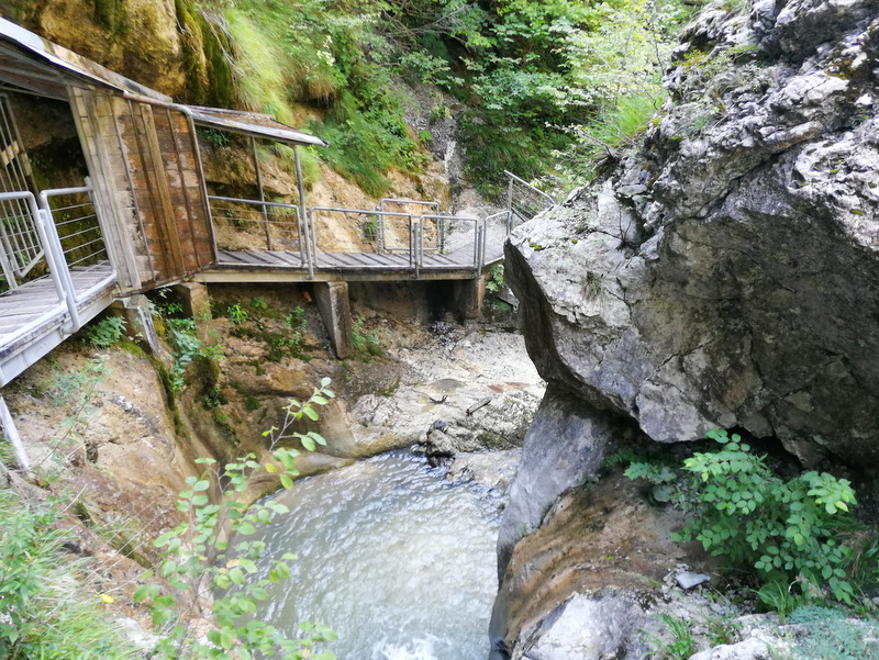 Pot tudi danes poteka ob potoku, a je lepo urejena, preko stopnic in po lesenih mostovih.