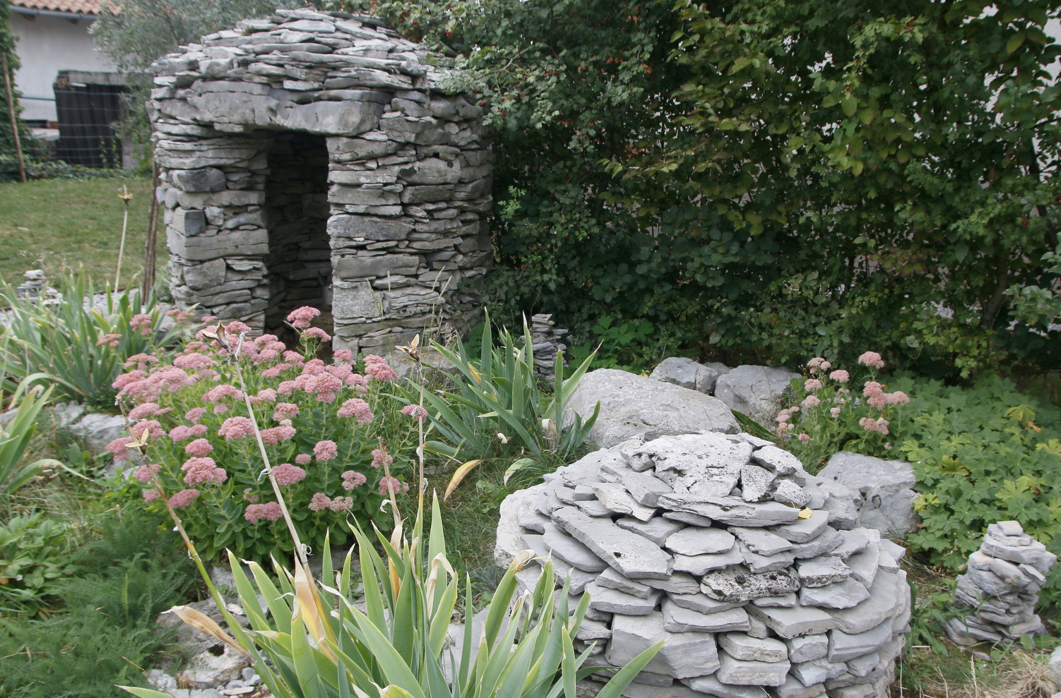 Oba vrtova si lahko ogledamo na dvorišču Bunčetove domačije v kraški vasi Dutovlje.