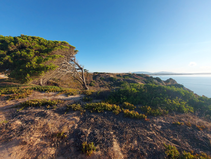 Ob poti se nahaja velik svetilnik (Farol da Piedade) zgrajen v začetku 20. stoletja, ki opozarja mimoidoče ladje na nevarne skale štrleče v morje. Nastal je na območju ruševin nekdanjega obmorskega samostana iz 16. stoletja, ki je bilo nato v 17. in 18. stoletju uporabljeno kot vojaška baza. Od leta 1980 je avtomatiziran.