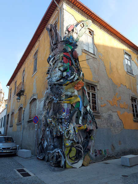 - velika skulptura pol zajec, ki je narejena v bistvu iz smeti in recikliranih materialov ter je kritika potrošništva