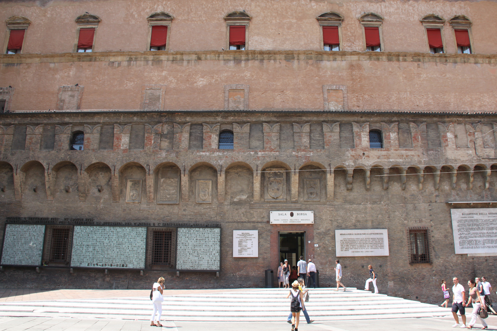 Ob sprehodu po mesta, ki smo si ga prav tako ogledali peš, so nas presenetile številne arkade. Te se v dolžini 40 km vlečejo po celem mestu in nudijo obiskovalcem prijetno zavetje pred vremenskimi vplivi: dežjem in tudi poletnim soncem. V srednjem veku so predstavljale podaljšek meščanske hiše oziroma prostor trgovanja in zbiranja. Najdaljši neprekinjeni del je dolg kar 3,5 km. Pod njimi se je prijetno sprehajati in še lepše nakupovati.