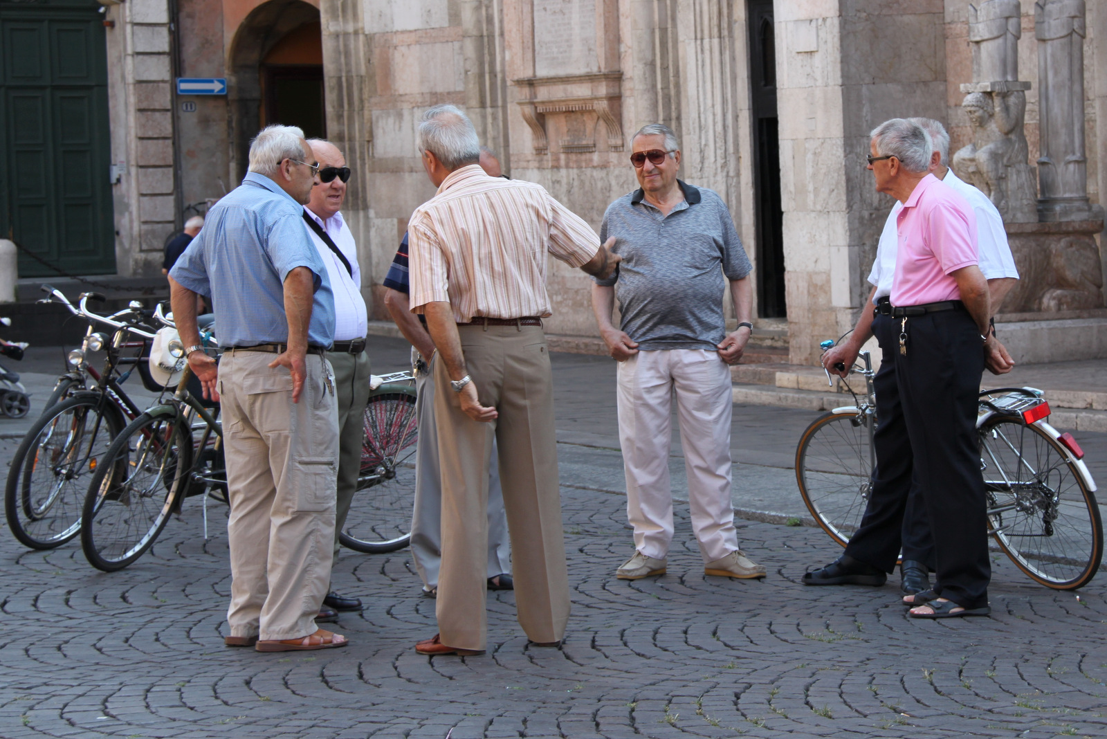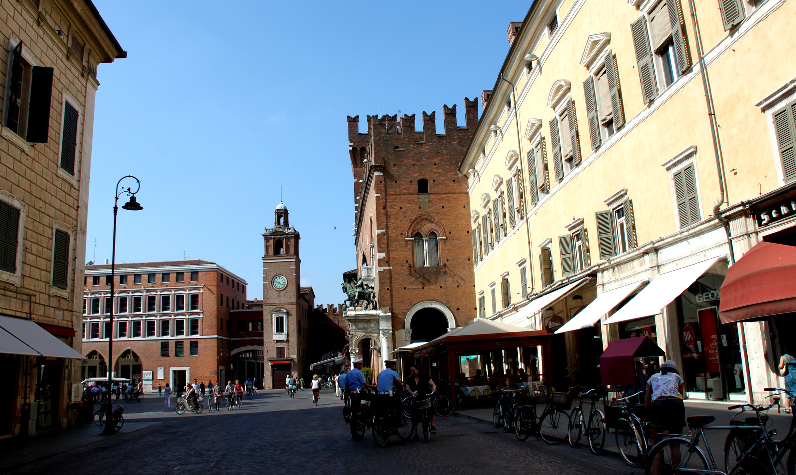 Naš prvi postanek je bil v mestu Ferrara. Presenetila nas je predvsem ležernost in sproščenost domačinov. Starejši možak je posedal na svojem udobnem stolu – skoraj fotelju pred trgovino na ulici ter opazoval mimoidoče. Domačini nasploh radi klepetajo in zdelo se je, kot da se jim nikamor ne mudi.