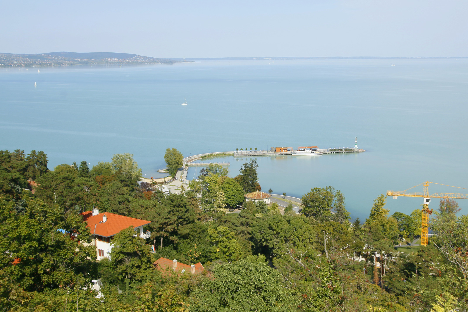 Blatno jezero obdaja pas trstičja, z druge strani pa ga na nekdanjih vulkanskih osamelcih obdajajo številni vinogradi, kjer nastaja posebno vino; pa še pogled na pristanišče Tihany.