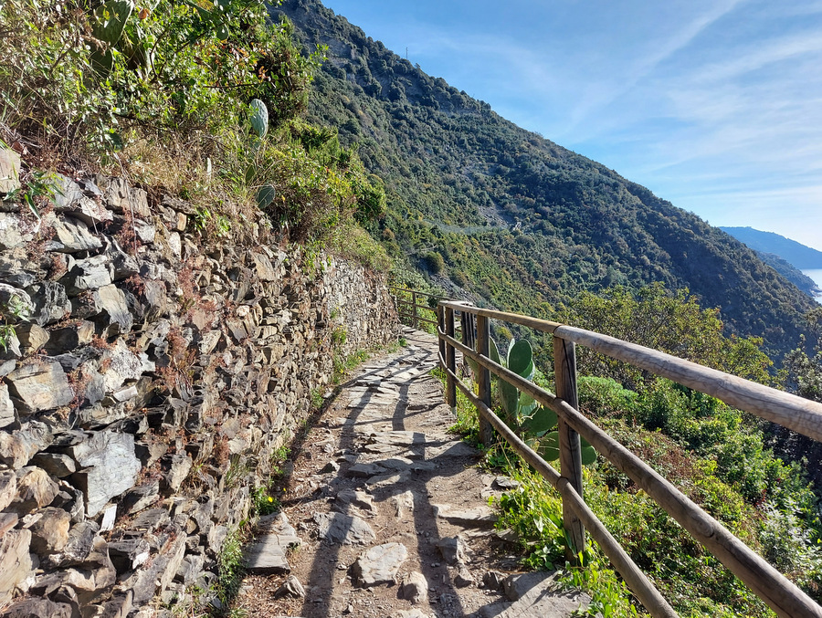 Vasi so dostopne s kratko vožnjo z vlakom, kar je najbolj priljubljen način potovanja med njimi. Druga možnost je vožnja z ladjo, ki prav tako vozijo od ene do druge vasi. To je obenem najdražja oblika transporta med vasmi. Tretja možnost pa je pohodništvo od ene do druge vasi, za kar smo se odločili tudi mi. Pot od ene do druge je različno dolgo, ni pretirano naporna, je pa vsekakor potrebna vsaj minimalna kondicija in seveda primerna obutev. Poti so zelo dobro urejene, na spletni strani nacionalnega parka (http://www.parconazionale5terre.it/) je potrebno preveri ali je morda katera izmed poti zaprta, kar se zgodi zaradi nalivov, plazov, ki pot dobesedno odnesejo. Sledimo le znakom za t.i. Modro pot (Sentiero Azzuro). Skupno je dolga ca. 11 km. Najbolj priljubljena je Via dell’Amore ali pot ljubezni med vasicami Riomaggiore in Manarola. Mi smo ga morali izpustiti, saj je zaradi plazov in uničenosti bila zaprta. Ob poti se ponujajo čudoviti razgledi na nižje ležeče vasi in plaže, bujno sredozemsko rastje – pinje, oljke, vinsko trto in agrume… Za pohodništvo je potreben nakup Cinque Terre Card (treking), ki stane 7,5 evra po osebi, ki jih kupimo na posebnih poslovalnicah, ki se nahajajo na železniških postajah (https://www.cinqueterre.eu.com/en/cinque-terre-card). Lahko pa kupimo drugo različico, ki vključuje še prevoze z vlakom.