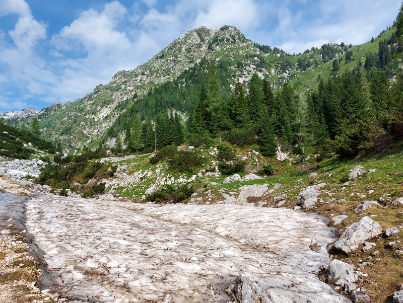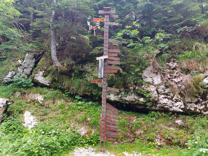 Nedaleč od zgornje postaje tovorne žičnice opazimo steber, na katerega vsako leto označijo višino snežne odeje.