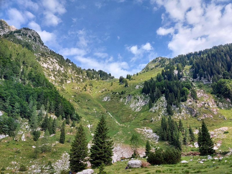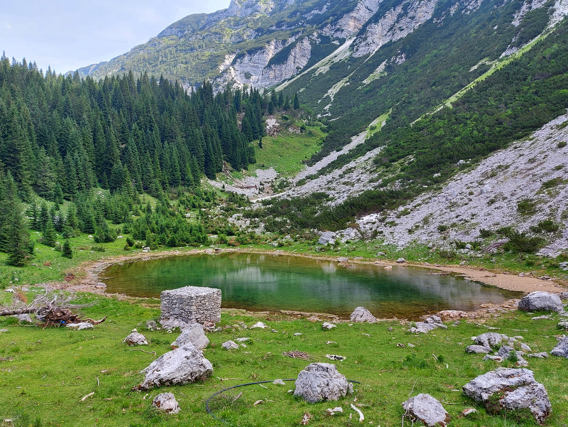 Okrepčamo se lahko v bližnjem Planinskem domu pri Krnskih jezerih (1.385 m), kjer je možno tudi prespati. Dom je bil zgrajen po vzorcu tolminskih in bovških pastirskih staj. Z gradnjo objektov in zimskega bivaka so pričeli leta 1980 in tri leta kasneje sprejeli prve obiskovalce. Danes ga sestavlja pet objektov.