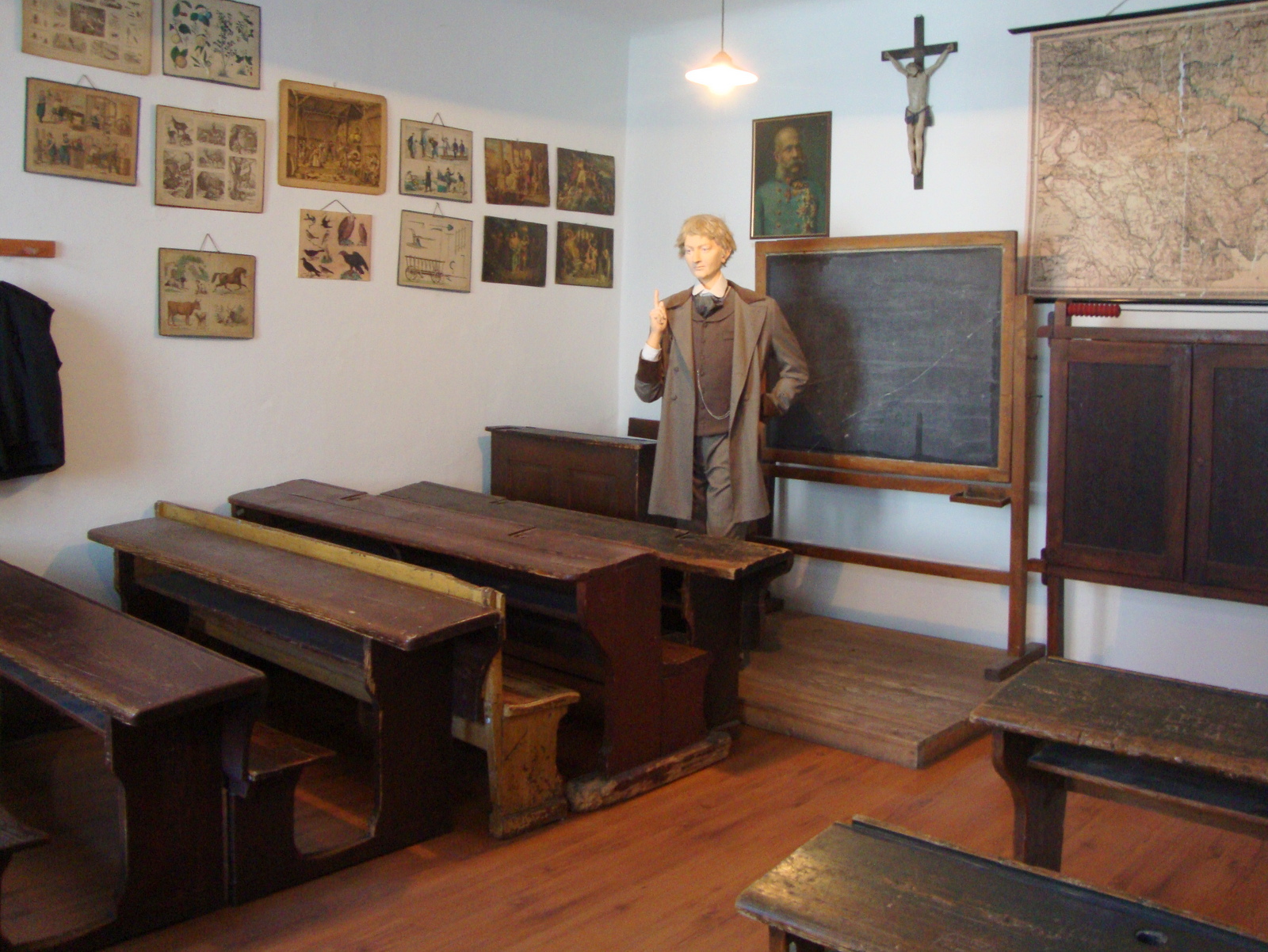 V stari učilnici oziroma šolskem razredu iz konca 19. stoletja lahko doživite pod vodstvom gospodične učiteljice ali gospoda učenika vzdušje v razredu, kot je bilo takrat, s prikazom žive igre zgodovine. Programi so prilagojeni starostnim skupinam. Začetek učne ure naznani šolski zvonec. Pod strogim očesom gospodične učiteljice ali tovariša učitelja učenci na zabaven način sodelujejo pri »pravem« pouku, kot so ga obiskali njihove babice in dedki. Učenci spoznajo in uporabljajo nekdanje šolske potrebščine. Če ne ubogajo, pa okusijo tudi čar nekdanjih disciplinskih ukrepov: kako je pela leskova palica, klečanje v kotu in sedenje v oslovski klopi.