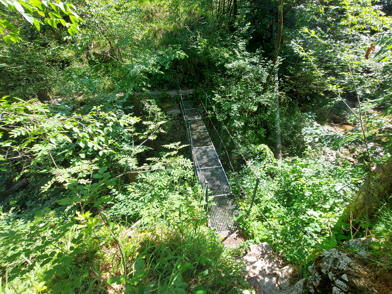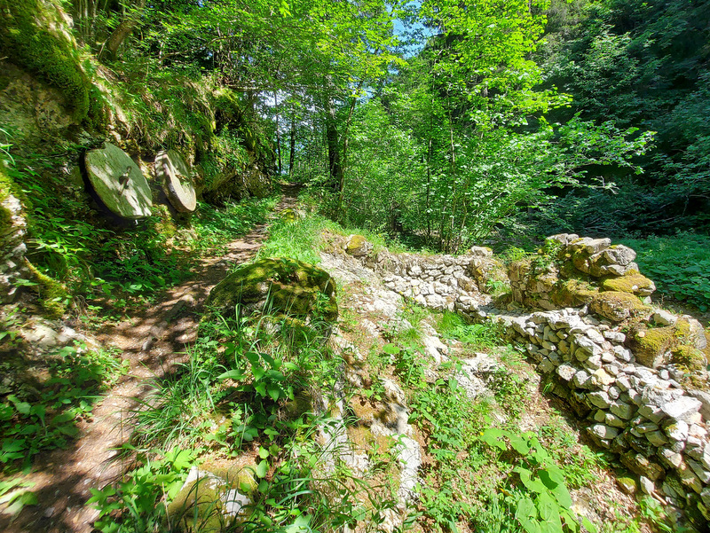 Nad zadnjim slapom so ostanki hidravlične črpalke (t.i. oven), s katero so poskušali črpati vodo za oskrbo višje ležečih vasi, kamnit jez ter za njim ostanki nekdanjih mlinov in žage.