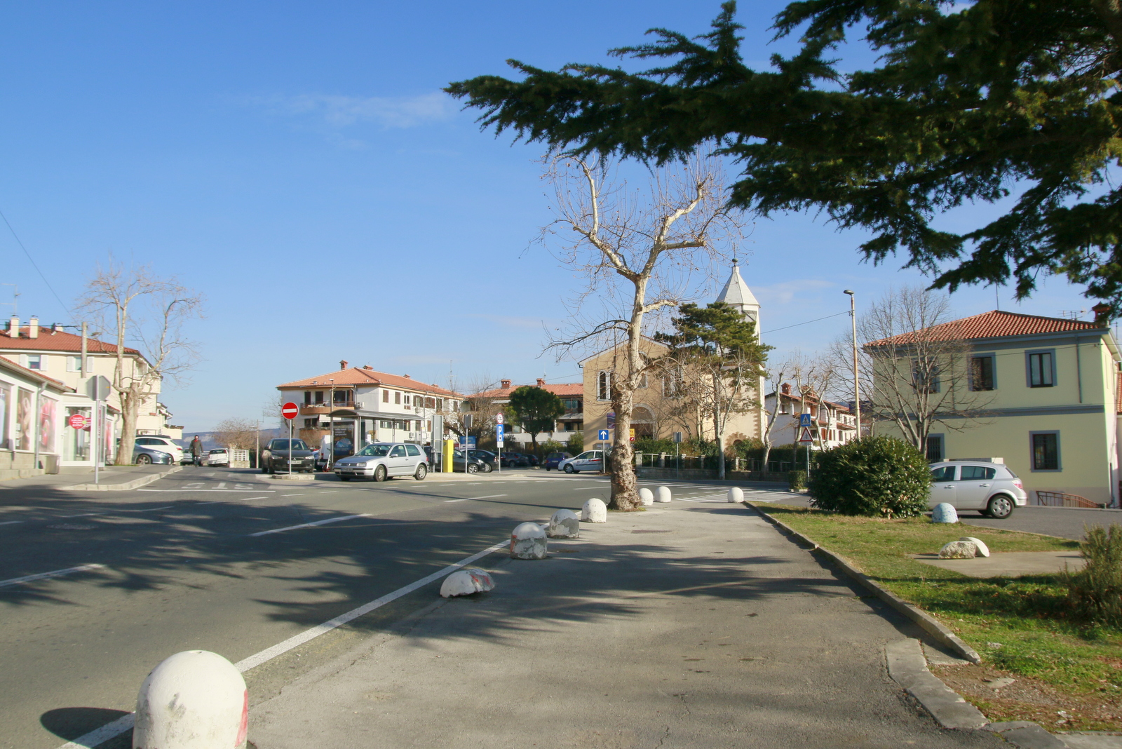 Prva je bila Antična Via Flavia, ki izvira iz prvega stoletja našega štetja. Čez več kot petnajst stoletij, jo je nasledila Via Delfina. Na t.i. »Strado Dolphina« spominja odlomek stebra z napisom, ki stoji ob cerkvenem zvoniku. Magistrala, t.i. Via Flavia, je bila zgrajena v tridesetih letih prejšnjega stoletja. Danes pod naseljem poteka nova avtocesta, ki povezuje ankaransko križišče z mejnim prehodom Škofije.