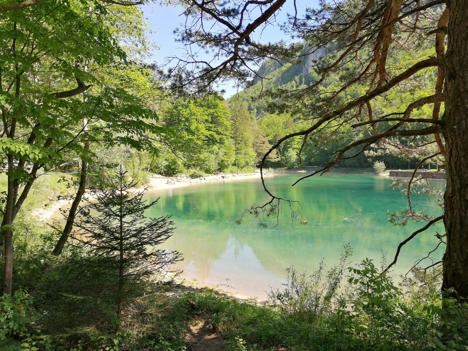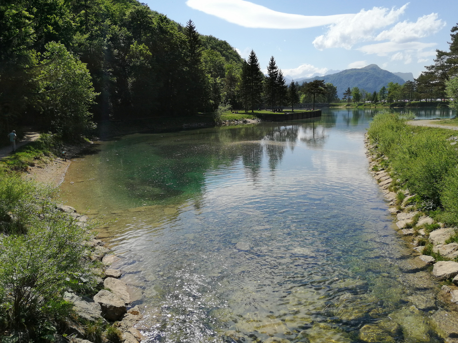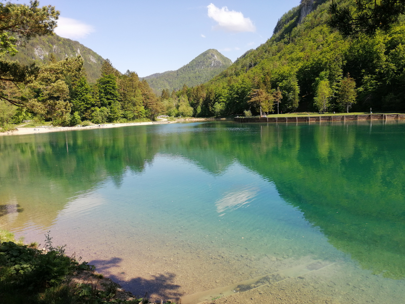 V okolici Jesenic, natančneje vzhodno od vasi Moste, se nahaja zanimivo jezero Završnica. Umetno zajezeno jezero v dolini pod Stolom (2236 m n.v.) je sicer majhno a prijetno za sprehod in izhodišče za raziskovanje tega dela Karavank. Lepa sončna nedelja je k jezeru smaragdne barve privabila številne sprehajalce, ki so se sončili in uživali ob jezeru. Mi smo jezero obiskali po sestopu z Golice, ker nam je ostalo še nekaj moči in časa za raziskovanje bližnje okolice.