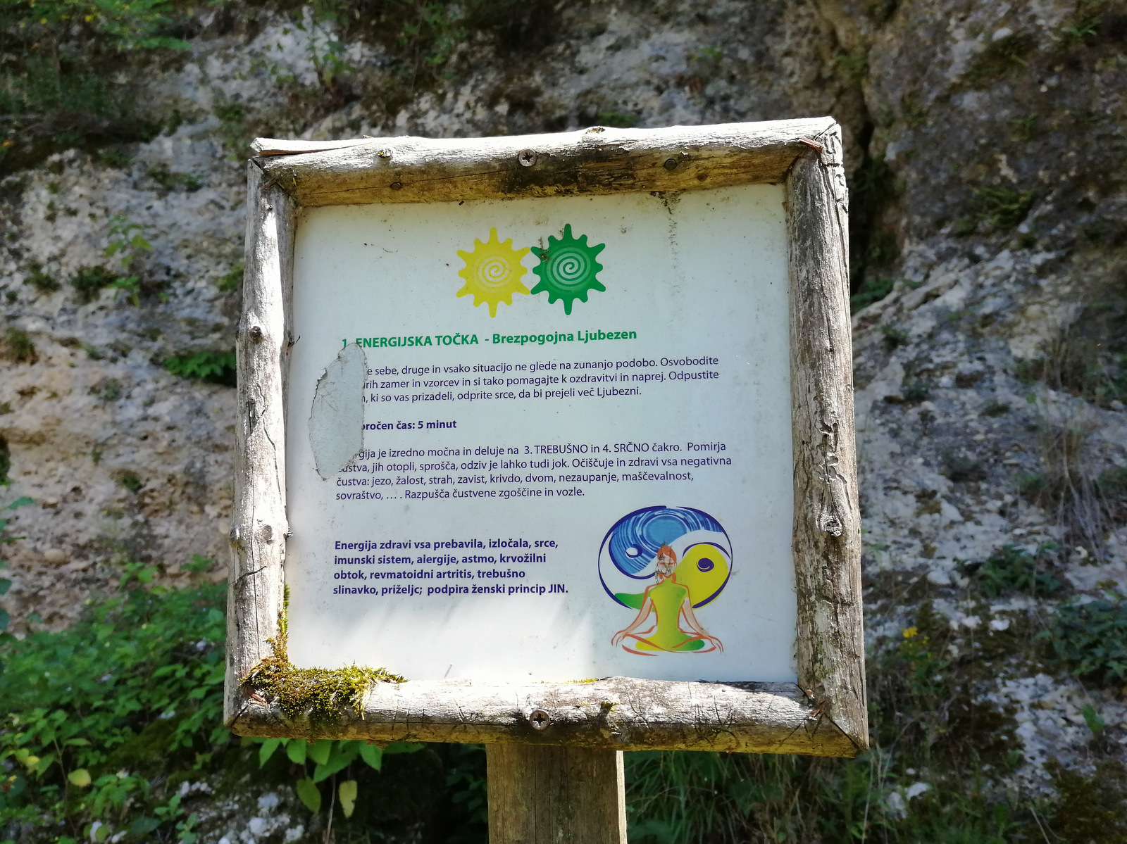 Ob hišici za izposojo supov se nahaja zdravilne energetske točke s 4 označenimi točkami in opisi, za kakšno zdravljenje je posamezna točka namenjena za in kako dolgo se naj tam zadržite.