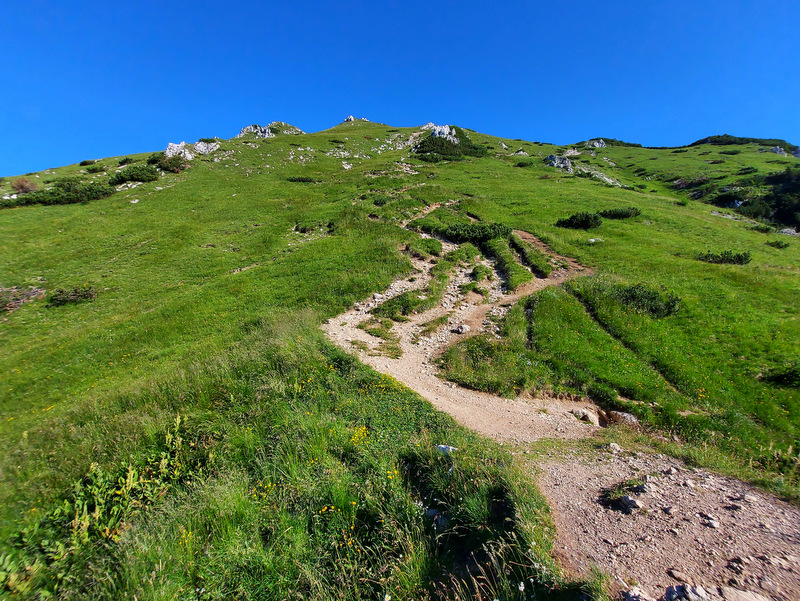 Z vrha se nam odpre lep razgled na Pokljuko in večino najvišjih vrhov Julijskih Alp vključno s Triglavom. Pohodniki, ki imajo radi več miru se raje odločajo za vzpon po poti preko Srenjskega prevala, ki je tudi nekoliko daljša.