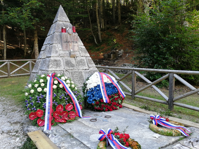 Umrli ruski ujetniki so pokopani v Trenti, večina pa v skupnih grobovih na Vršiču in pod njim, v kamniti grobnici v obliki piramide z napisom v ruščini »Sinovom Rusije«.
