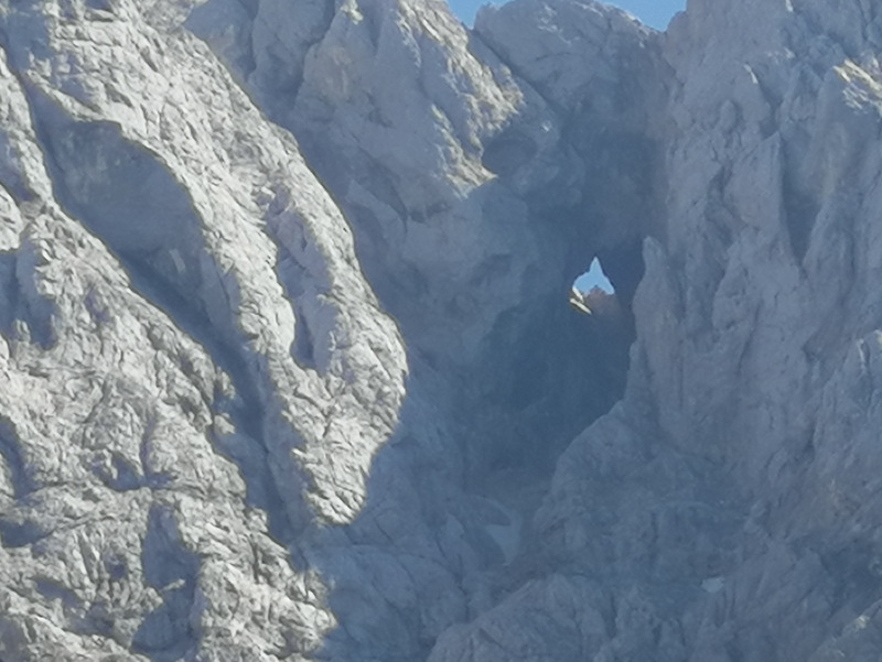 Prisank (2.547 m, tudi Prisojnik) velja za najmogočnejšo goro Julijskih Alp. Ob njegovem boku je dobro vidna Škofova glava, skalnati greben. Mati narava se je na tej mogočni gori poigrala na dveh mestih. Na njegovi desni strani (pogled iz strani ceste na Vršič) je ustvarila kar 80 metrov visoko in 40 metrov široko mogočno okno. Na videz, od zelo daleč, izgleda kot majhna luknjica. Nastalo je z udorom, ki se je s preperevanjem večal v sedanjo odprtino.