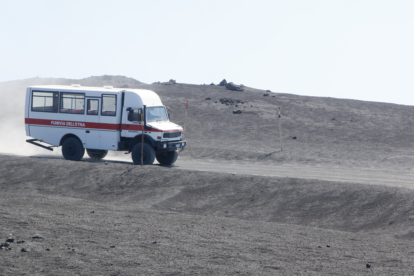 Od izstopne postaje gondole do naslednje točke, do koder vozijo štirikolesni avtobusi, lahko tudi pešačite, kar je za tiste, ki se ne odločijo za nadaljevanje poti z vodnikom, zelo dobra izbira, saj ob poti veliko vidimo oziroma doživimo. Potrebna je dobra pohodniška oprema in vetrovka. Prav smešno je opazovati nekatere turiste, ki se sprehajajo po po vulkanskem kamenju in pesku z belimi ali platnenimi čevlji, poletnih čevljih ali japonkah… Tudi sicer boste črn pesek iz čevljev stresali še nekaj časa.